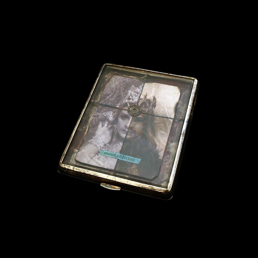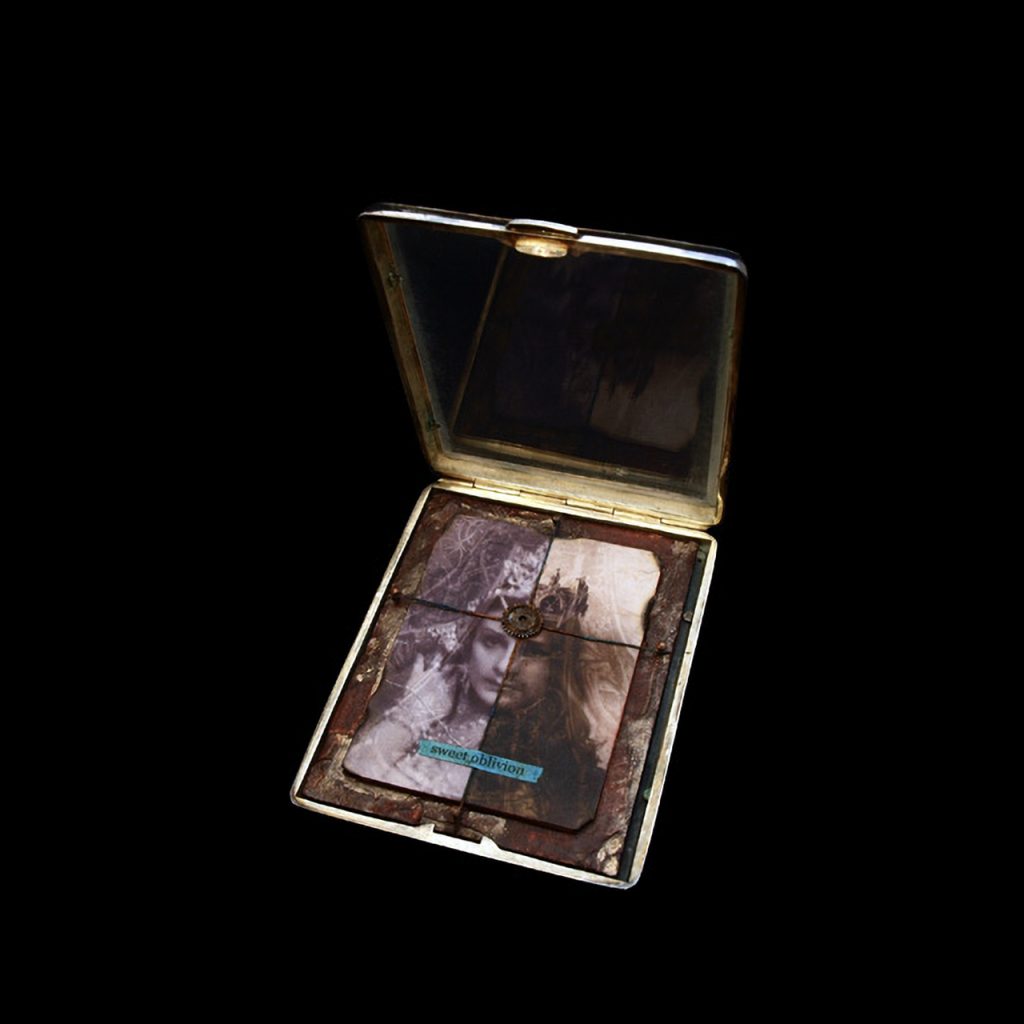 Accomplice MACBETH and LADY MACBETH / 共犯・マクベスと夫人2016年 9.8×7.5×1.3cm・個人蔵[技法]アクリル絵具、水性塗料、デジタルペイント、デジタルコラージュ、デジタルプリント、コラージュ、アッサンブラージュ、エイジング加工[素材]歯車、糸、釘、紙、シルバーケース