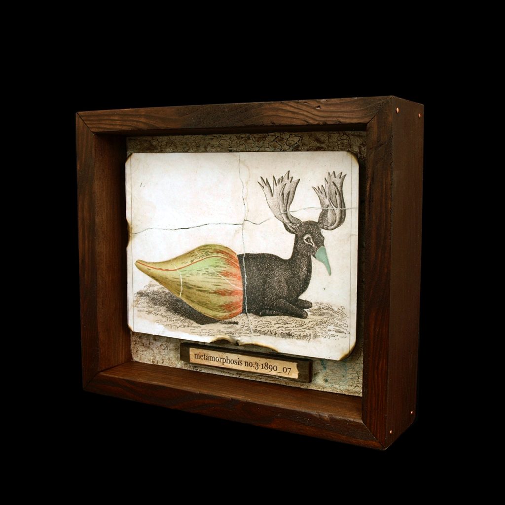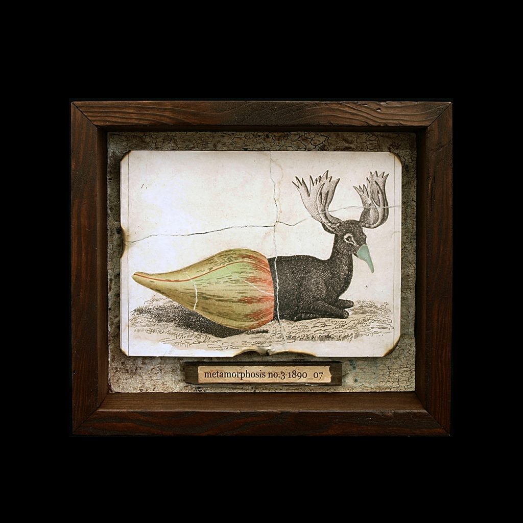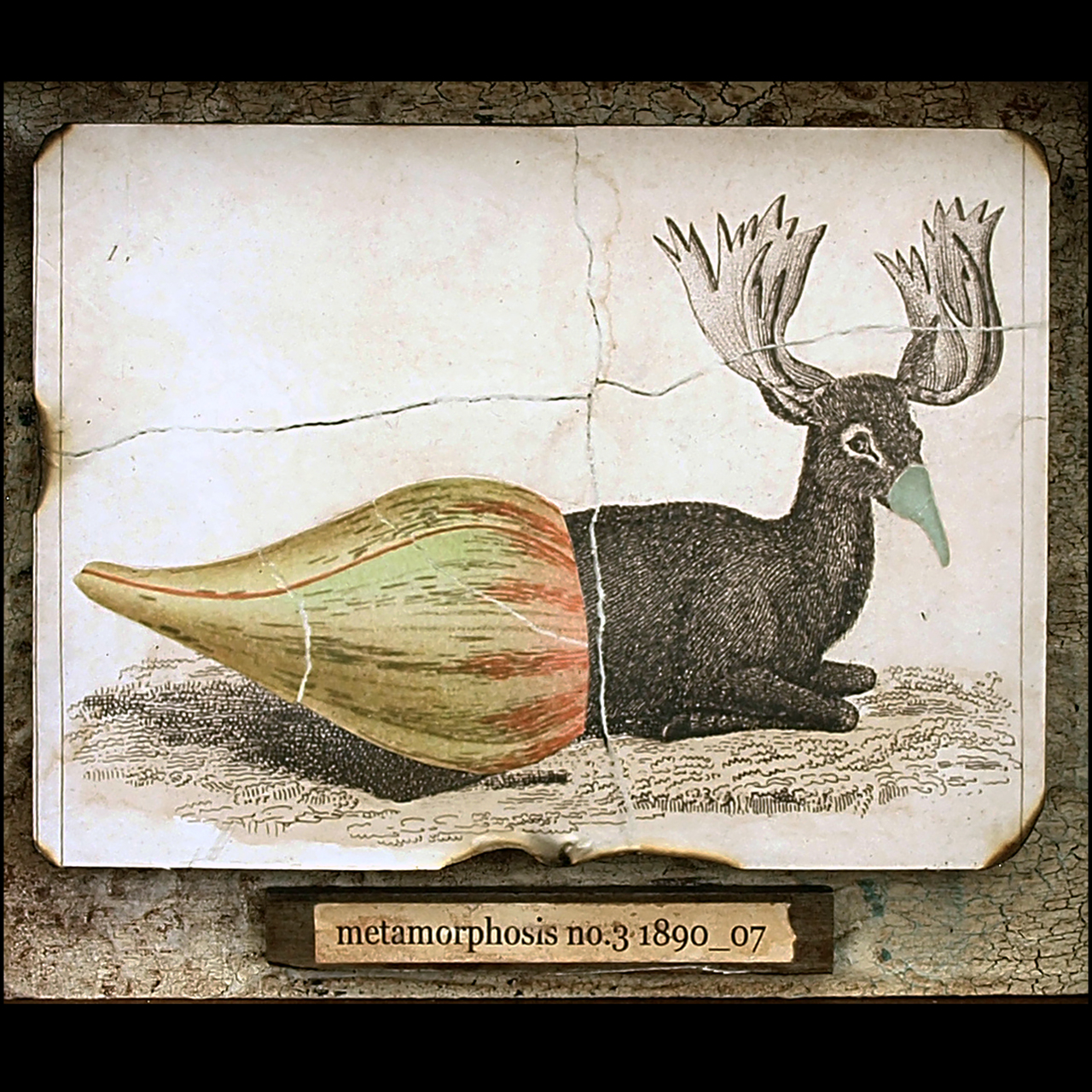 1880年、生物学者ラフレジオが制作した植物と動物のキメラ体のコラージュ。このイメージをもとにラフレジオは生体実験を繰り返し、十年後の1890年7月に『変容 no.3』と名付けられ生物が完成したと云われている。