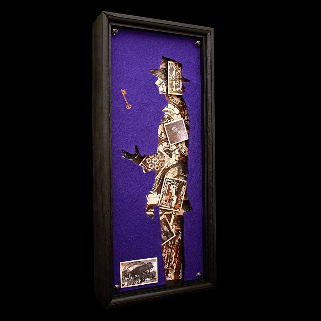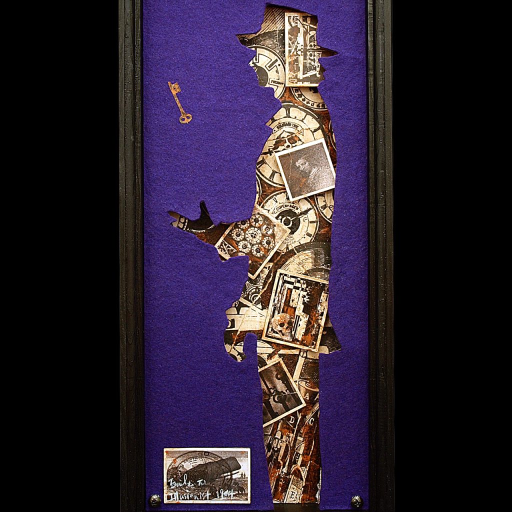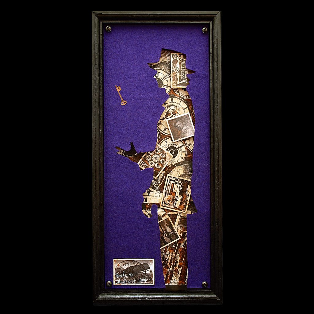 アクリル絵具、色鉛筆、デジタルプリント、コラージュ、切り絵、エイジング塗装、ウレタンニス、木工