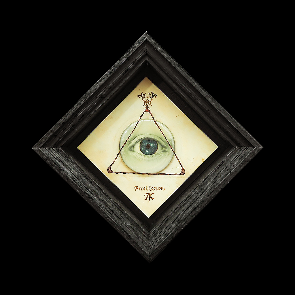 ・秘密結社のシンボル(プロビデンスの目)からイメージして制作したオブジェ。