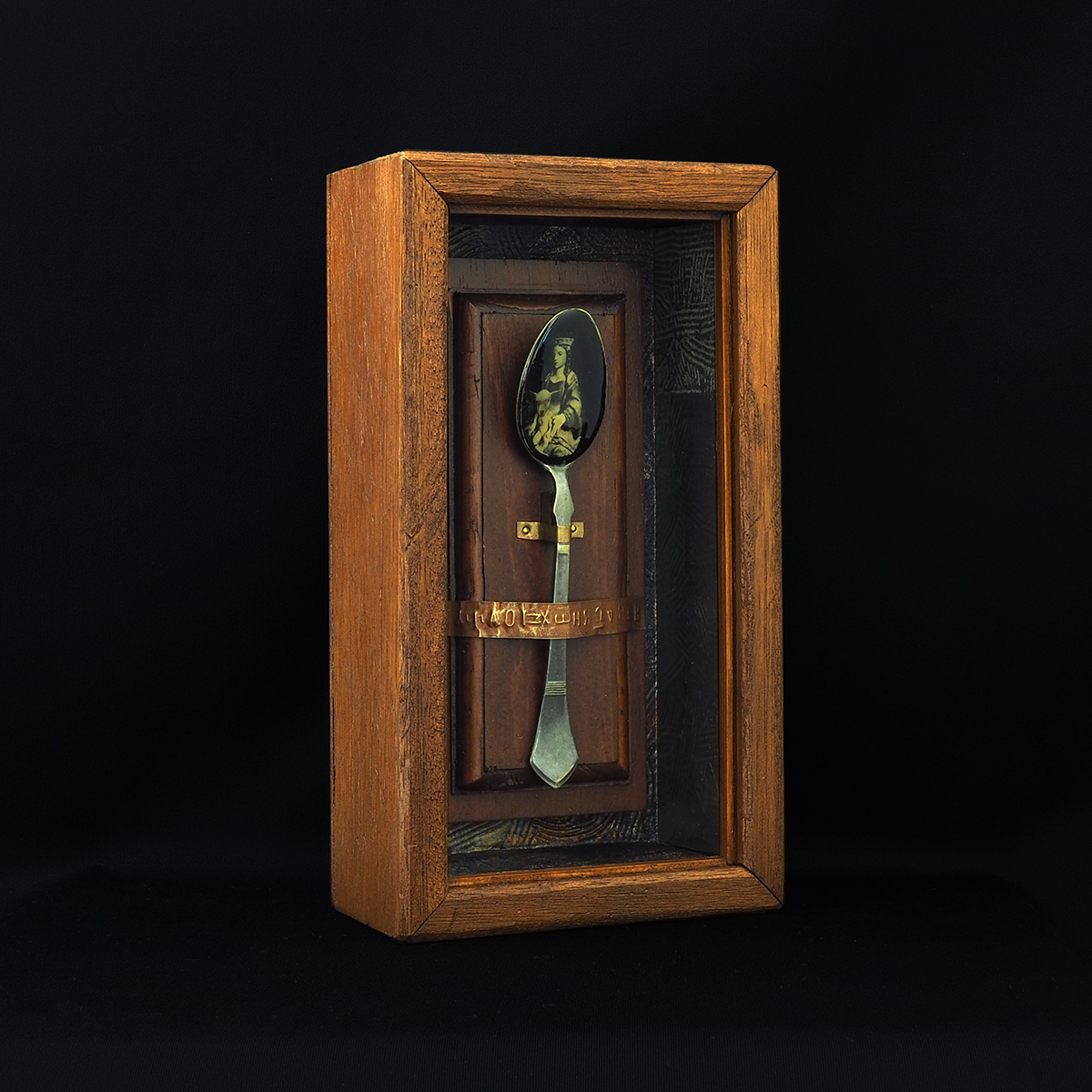 スプーン、真鍮、銅板、釘、アクリル板、木材