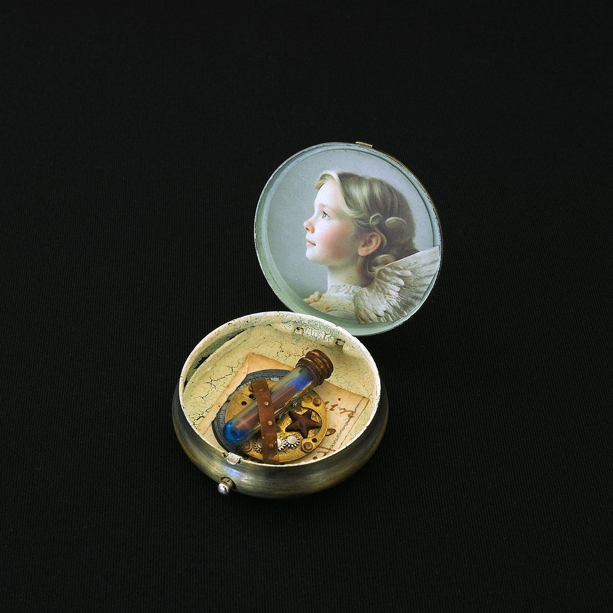幼い天使の肖像と小さな試験管に納められた緋色の羽根のかけら。
