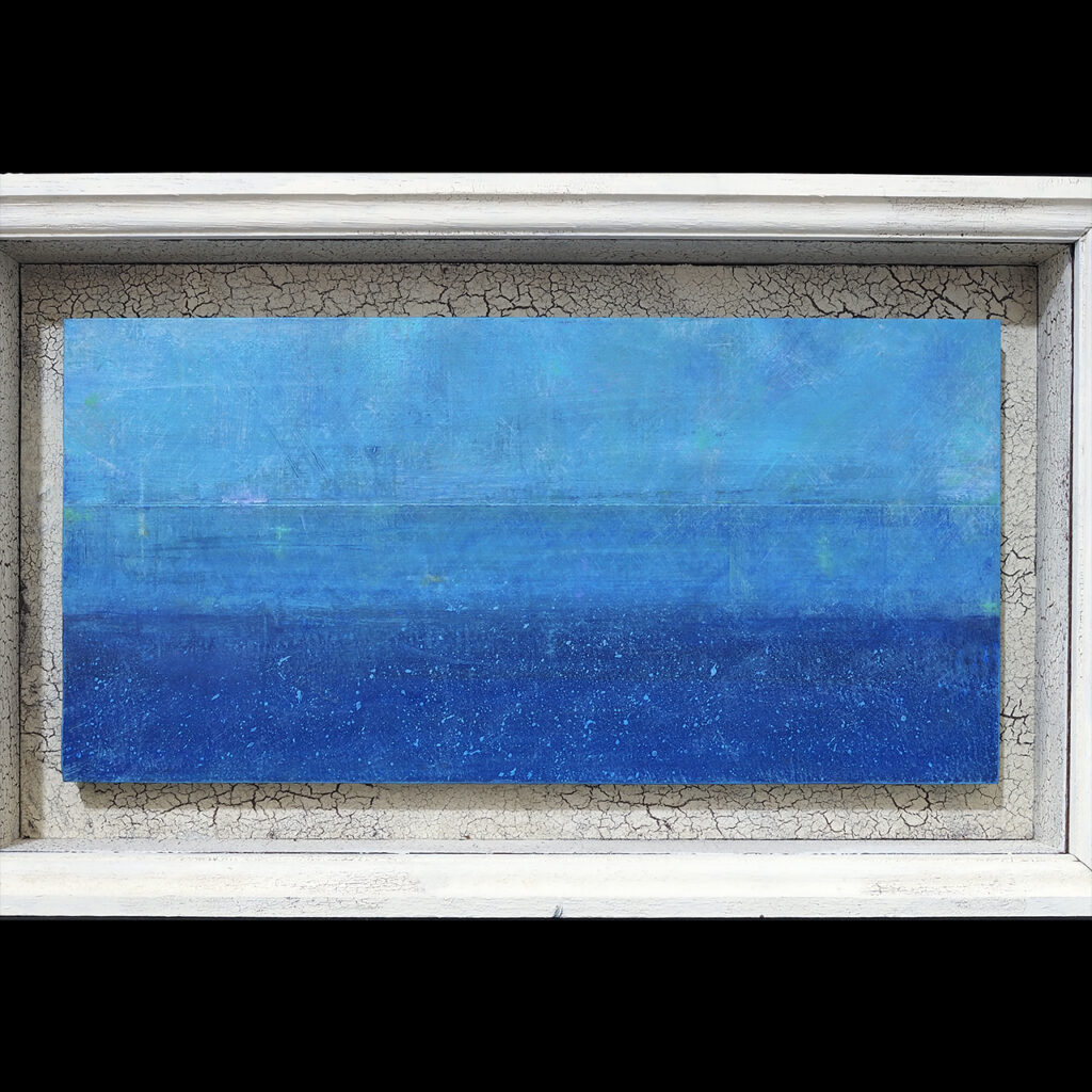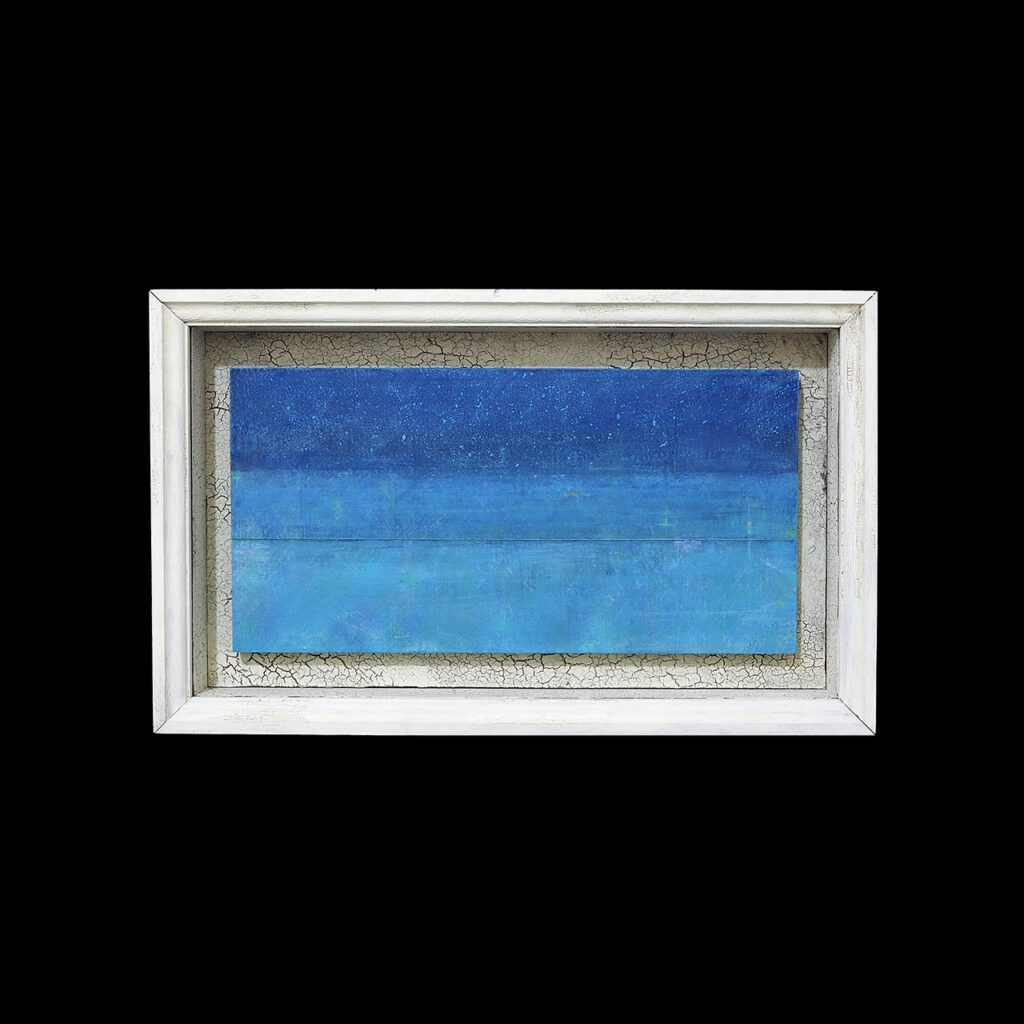 魔法の海 / The Sea of Magic2025年 18.8×31×6cm空と海の境界、そのあわい。・上下なくどちらでも飾れる作品です。[技法]アクリル絵具、コラージュ 、水性塗料、エイジング塗装、エイジング加工、木工[素材]アクリル板、紙、木材